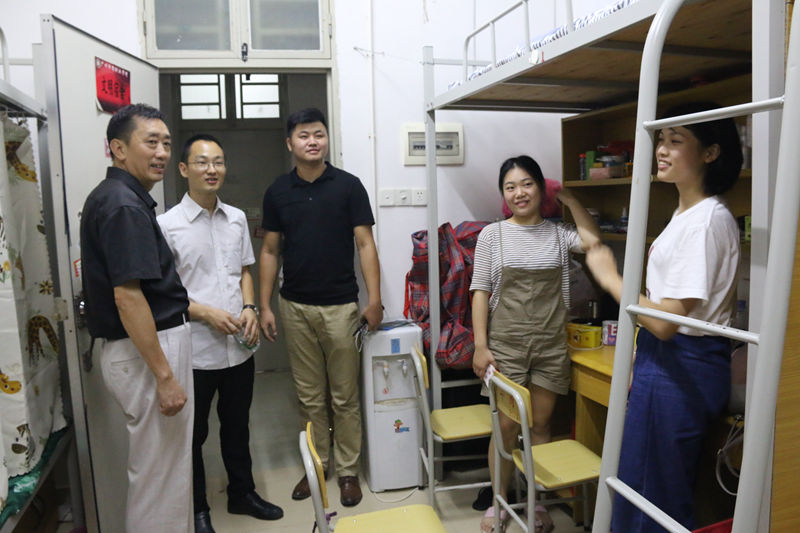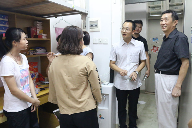 田千喜主任每到一间宿舍,就询问新生到校情况、新环境住宿是否习惯等等,希望新生尽快转变角色,安排妥当、照顾好自己并处理好各种人际关系。他们还叮嘱同学们遇到困难要及时和辅导员、助班等沟通交流。并查看了寝室的各种设施,确保设施的完善性,提示新生可以通过我们的华商E家报修等。